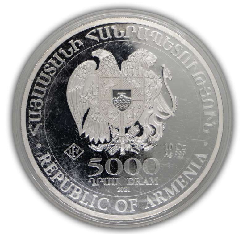 Deze munt van 5000 dram is geslagen in puur zilver (999/1000)