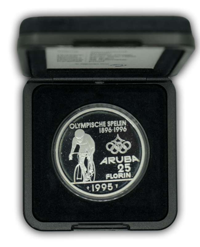 Aruba 25 Florin 1995 Olympische spelen Atlanta proof in doosje يتضمن الشهادة.