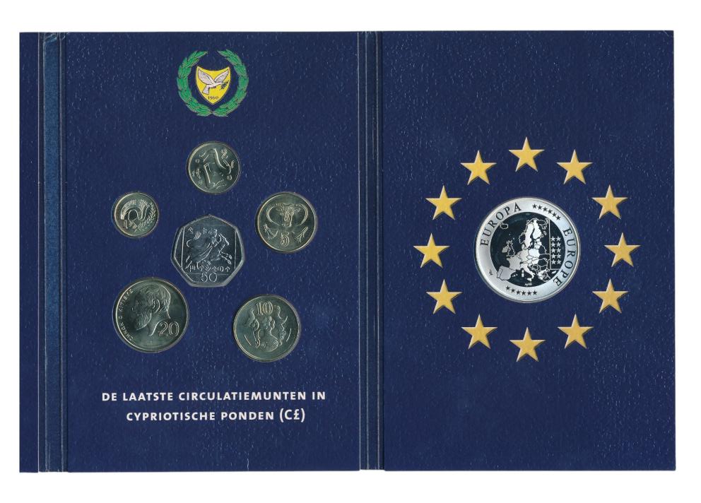 Bevat de laatste circulatie munten in Cypriotische Ponden en een zilveren Europa-penning (geslagen in sterling zilver (925/1000).