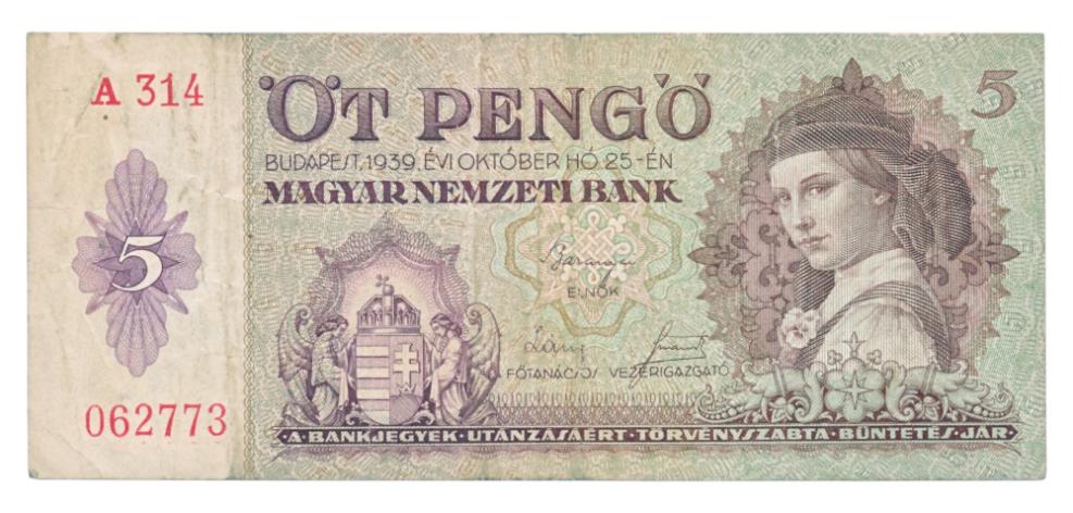 Hongarije 5 Pengő 1939 Pick: 106Voorbeeldfoto, u ontvangt een vergelijkbaar exemplaar.