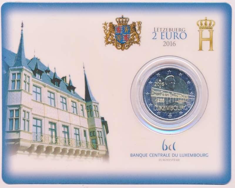 لوكسمبورج 2 يورو 2016 الدوقة الكبرى شارلوت بريدج في بطاقة العملة المعدنية