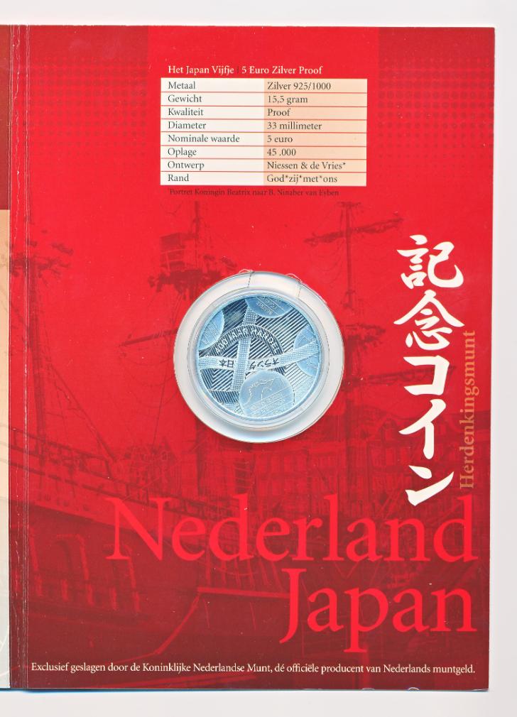 Nederland 5 Euro 2009 Nederland-Japan proof in blister Gewicht:11,9 gram Diameter:29 millimeter Zilver (925/1000) الجودة: برهان