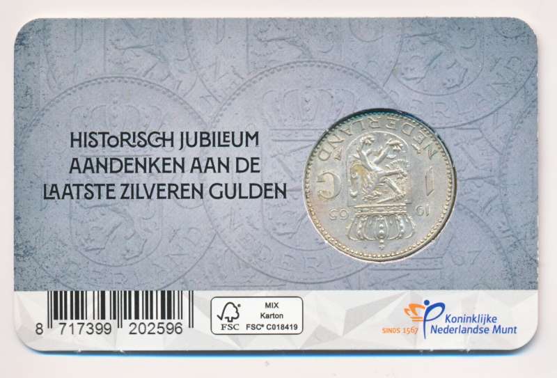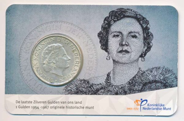 Historische coincard zilveren gulden Juliana 1965.