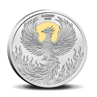 De Jaarset Nederland 2025 Proof-kwaliteit bevat een nieuwe penning, die ook volledig in het teken staat van het element vuur. Op de voorzijde van de penning staat een Feniks afgebeeld. Dit is een mythisch wezen, dat symbool staat voor wedergeboorte. Het staat ook voor onsterfelijkheid. In de mythologie bouwt de Feniks aan het einde van zijn leven een nest: dit nest gaat op in vlammen en uit deze vlammen rijst een nieuwe Feniks op. Tegenwoordig staat dit mythologische dier voor het terugkomen van een tegenslag. Op de keerzijde van de penning staat een zon, hét symbool voor vuur.