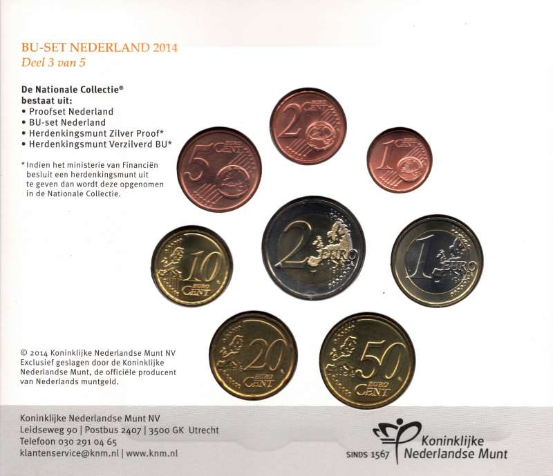 Nederland BU-set 2014 Willem AlexanderBevat de complete euroset van 1 cent t/m de 2 euro.