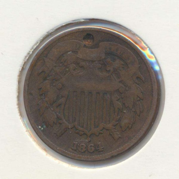 USA 2 Cents 1864 Krause nummer: 94 Fraai, met gaatje.