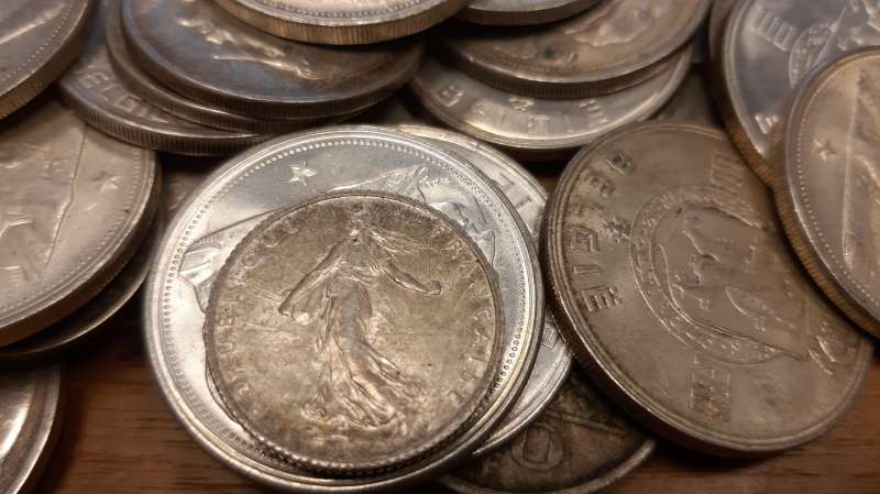 U ontvangt een lot met diverse munten van België en/of Frankrijk met het gehalte 835/1000.