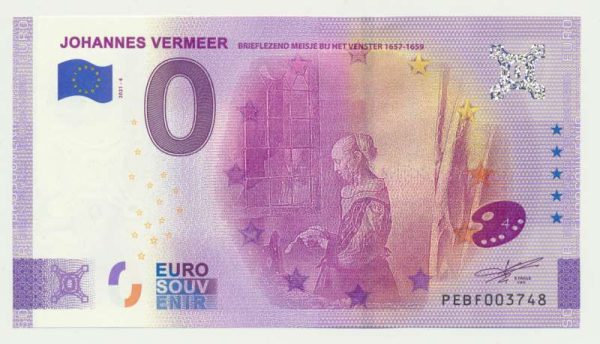 Nederland 0 Euro Johannes Vermeer brieflezend meisje bij het venster 1657-1659Uitgifte:2021-4