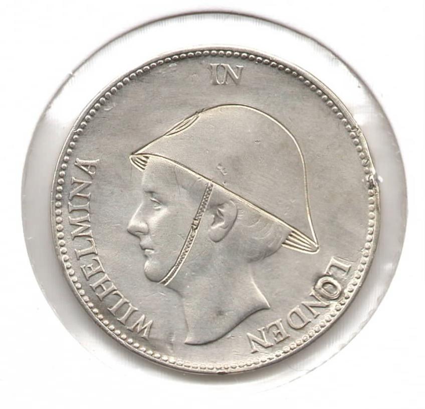 Tijdens de tweede wereldoorlog sprak koningin Wilhelmina via ‘Radio Oranje’ het verzet toe. Omdat Wilhelmina samen met de regering in Londen zat, ontstond er de leus ‘Wilhelmina in Londen’ en werden de zilveren munten met koningin Wilhelmina erop zo bewerkt dat de koningin een helm op kreeg en de randtekst in sommige gevallen uiteindelijk werd veranderd in ‘Wilhelmina in Londen’. Naast de gulden werden er ook andere zilveren Wilhelminamunten bewerkt, zo zijn er nog de: