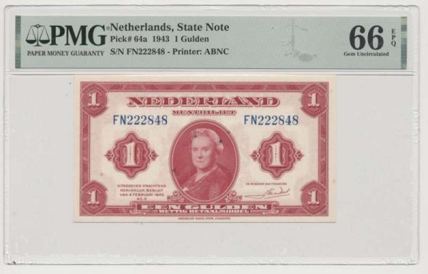 Niederlande 1 Gulden 1943 Wilhelmina PMG66 EPQ