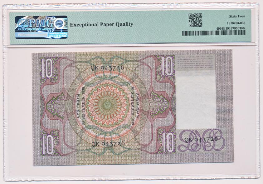Niederlande 10 Gulden 1933 Graubart PMG64 EPQ