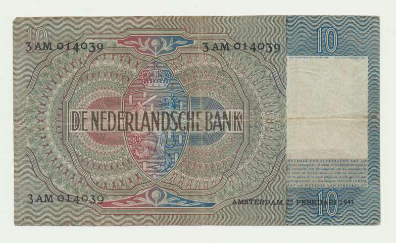 Het tientje werd uit omloop gehaald tijdens de geldzuivering van 1945.