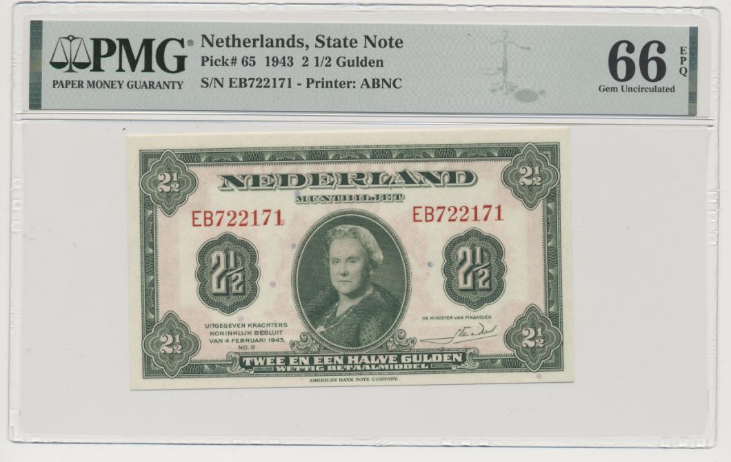 Nederland 2,5 Gulden 1943 Wilhelmina PMG66 EPQ
