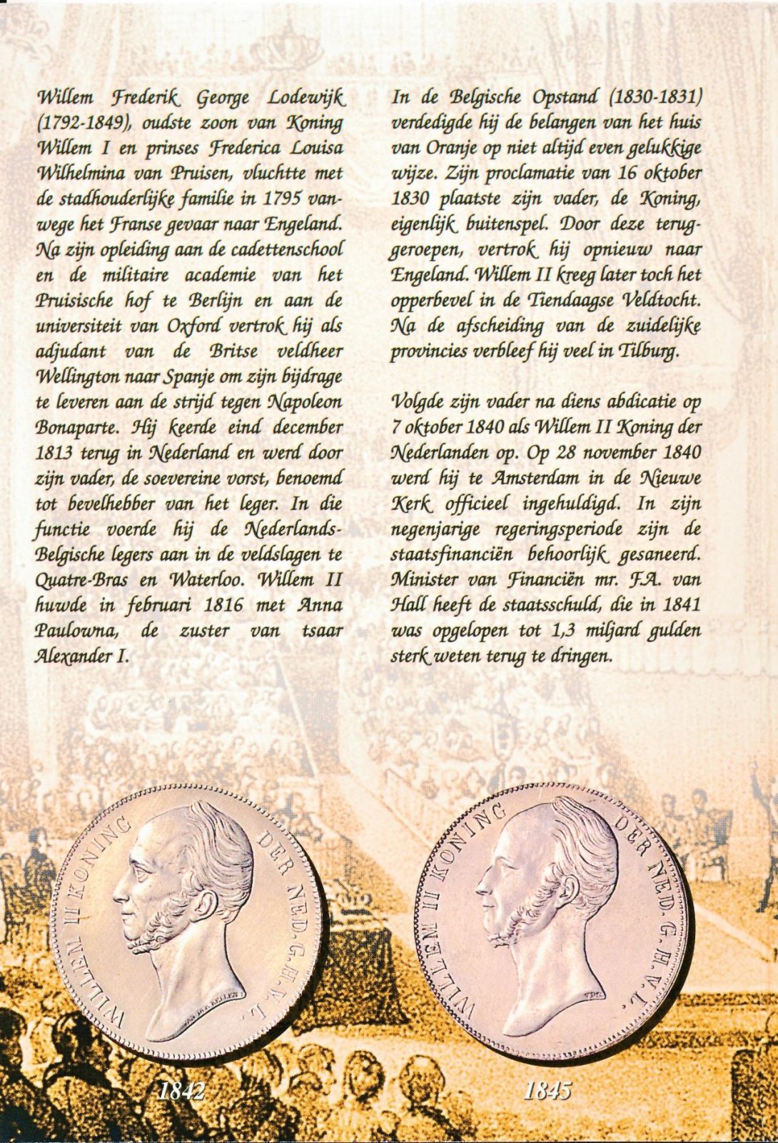 De set bevat de 5 cent, 10 cent, 25 cent, 1 gulden, 2 1/2 gulden, 5 gulden, en een penning Willem II.