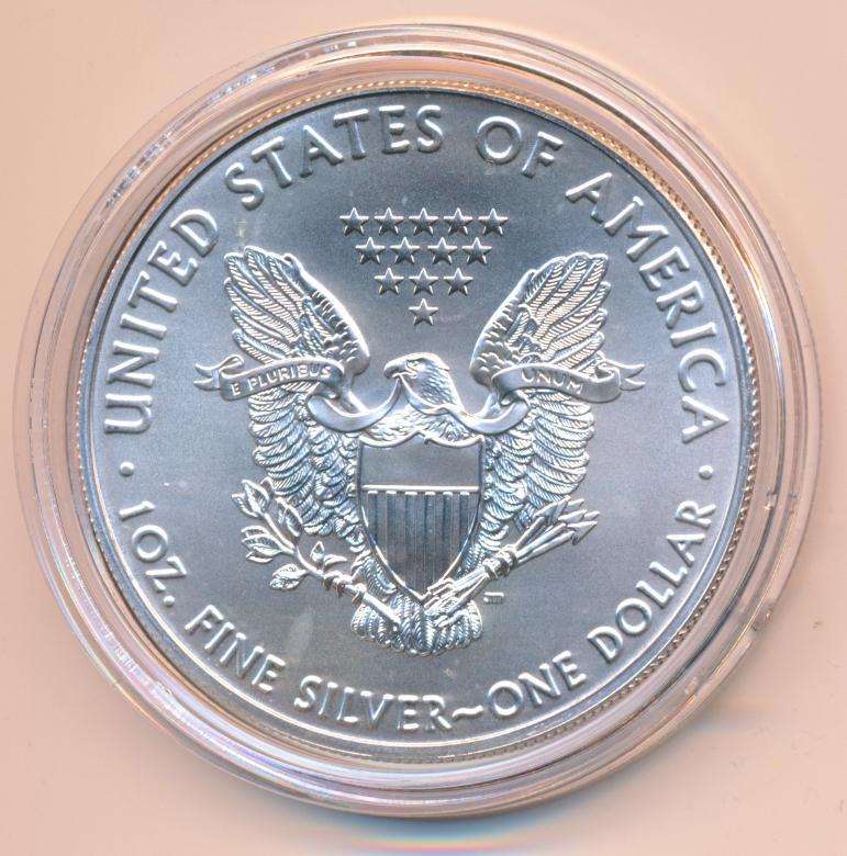 Gekleurde uitgifte van de zilveren Amerikaanse dollar, ook wel de eagle genoemd.