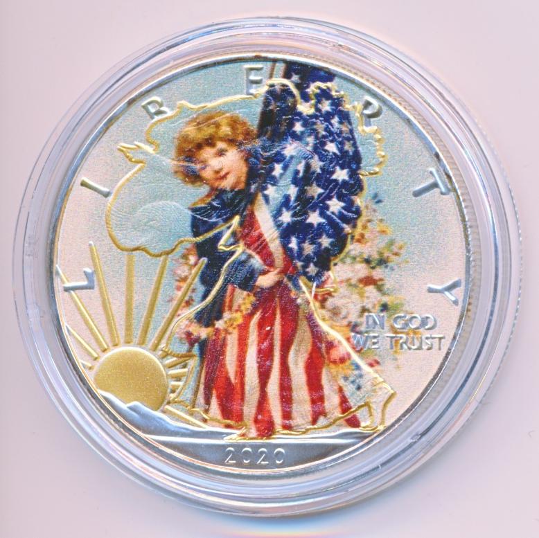 Gekleurde uitgifte van de zilveren Amerikaanse dollar, ook wel de eagle genoemd.