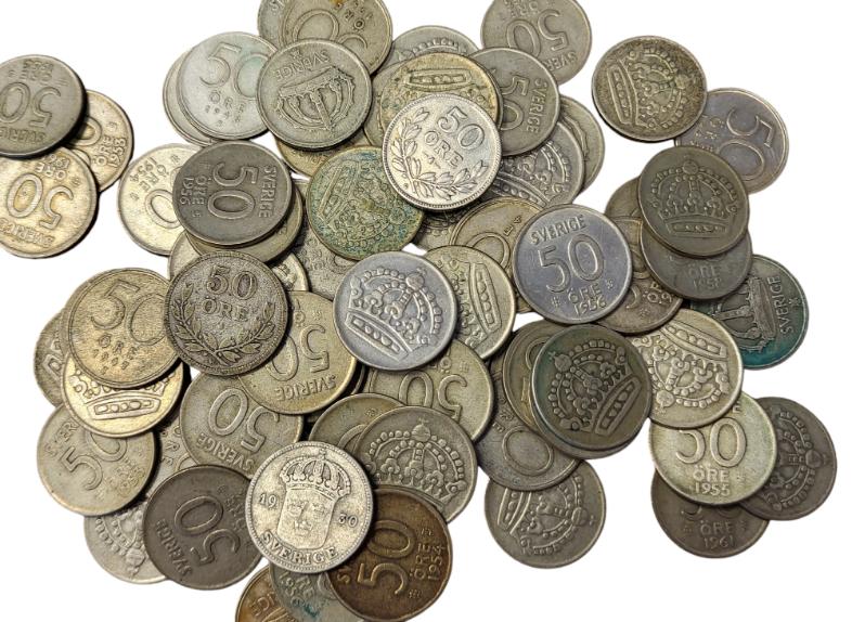 U ontvangt een lot van 50 stuks zilveren 50 ore uit Zweden.