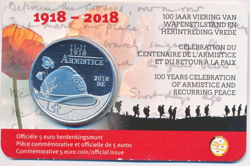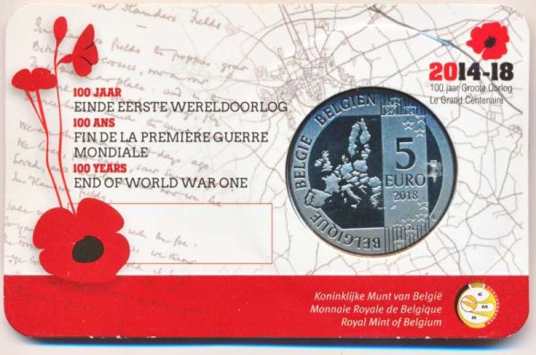 Belgium 5 euros 2018 100 years of Armistice in Coincard