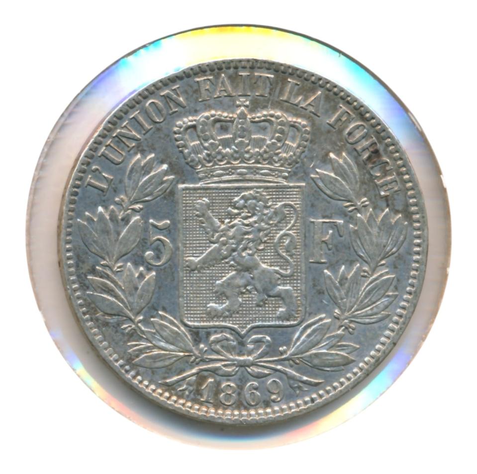België 5 Francs 1869 See scans for more details. For questions, feel free to send us a message.