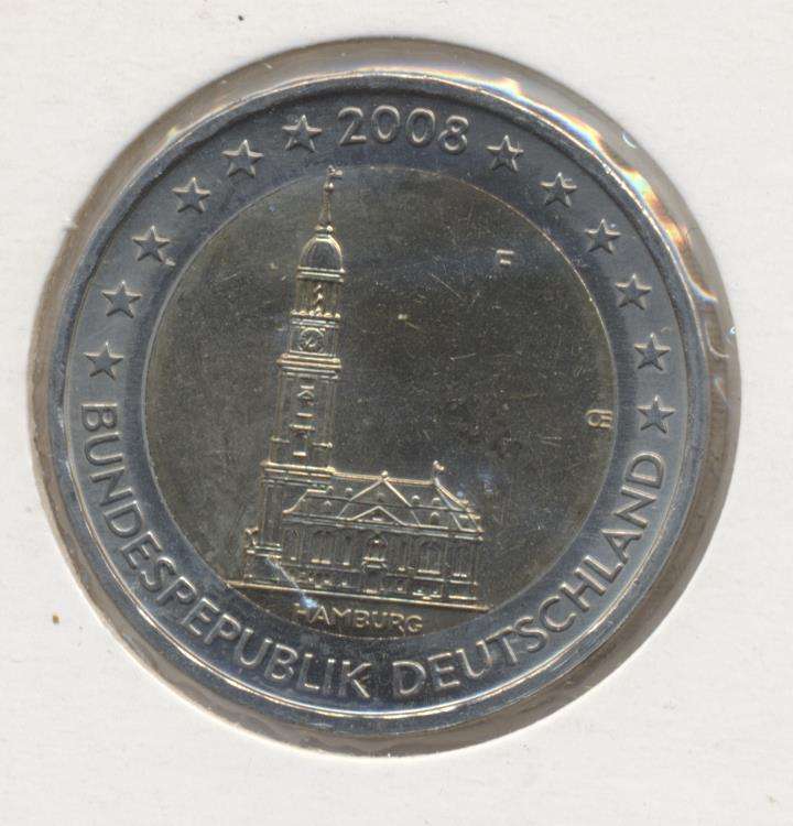 Germany 2 euro 2008-F Hamburg (old card) Back contains the old card. This one is comparatively a lot less struck. Print run:75,000 pieces See scans for more details. For questions, feel free to send us a message.