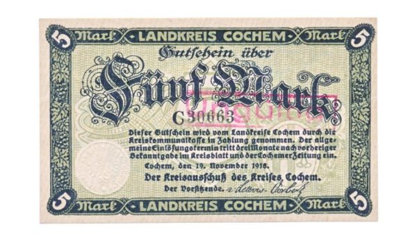Germany 5 Mark 1918 Landkreis Cochem See scans for more details. For questions, feel free to send us a message.