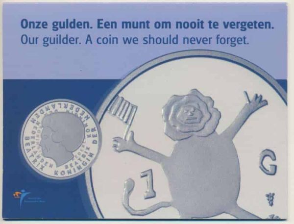 Nederland laatste 1 gulden 2001 FDC in set. Deze set bevat de laatste gulden van Nederland. Ontwerp dor Tim van Melis.