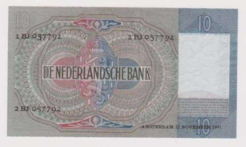 Het tientje werd uit omloop gehaald tijdens de geldzuivering van 1945.