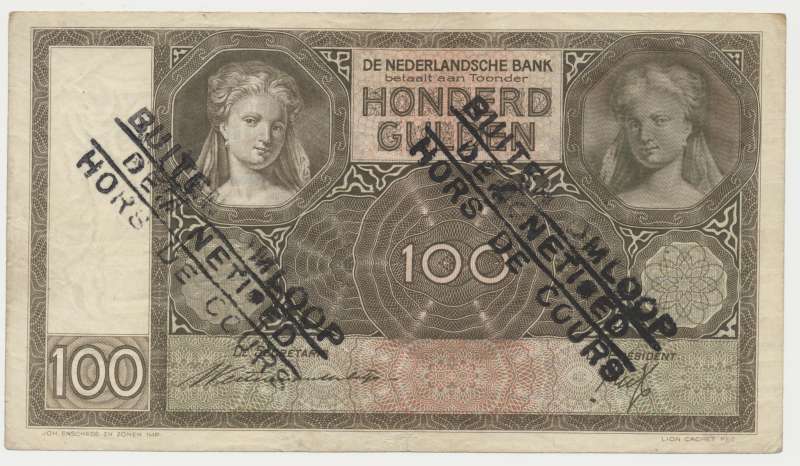 Het 100 guldenbiljet werd bij de geldzuivering in 1945 uiteindelijk ongeldig gemaakt en uit de omloop gehaald.