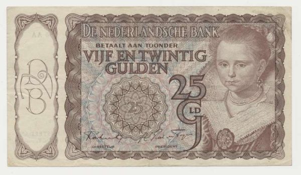Het vijfentwintig guldenbiljet ‘Prinsesje 1943’ werd uiteindelijk bij de geldzuivering van 1945 uit omloop genomen.