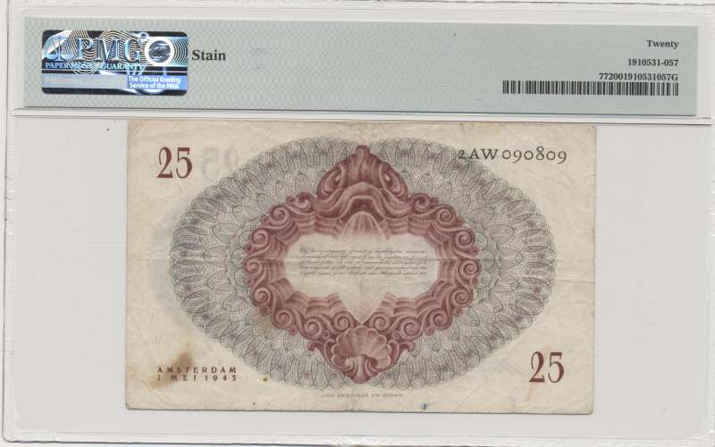 Netherlands 25 Guilder 1945 Girl in blue PMG20