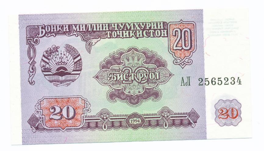 Tajikistan 20 rubles 1994 Pick: 4 See scans for more details. For questions, feel free to send us a message.