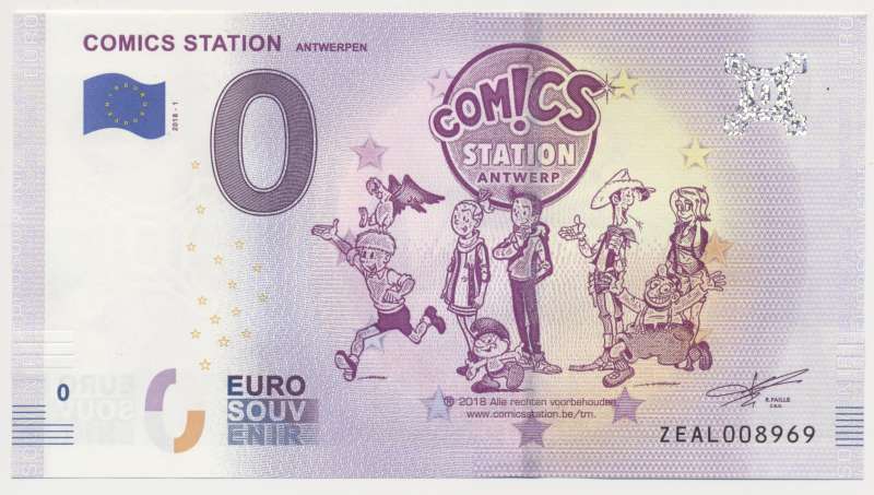 Belgique 0 Euro Comics station Antwerp 2018 Met diverse stripfiguren zoals suke en wiske, Lucky luke, de smurven, etc.