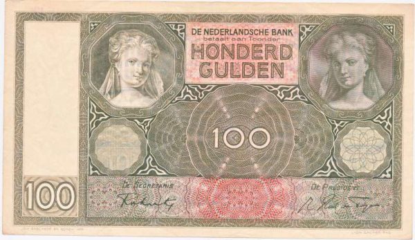 Le billet de 100 florins a finalement été invalidé et retiré de la circulation lors de la purge des espèces en 1945.