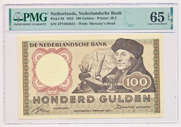Pays-Bas 100 florins 1953 Erasmus PMG65 EPQ