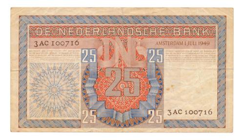 Omdat het billet de vingt-cinq florins ‘Flora’ niet voldeed aan de eisen om vervalsing tegen te gaan, werd het vervangen door het biljet met dezelfde waarde maar met de Bijbelse koning Salomo erop. Het biljet met koning Salomo was oorspronkelijk bedoeld als een tien gulden biljet (blauw), maar werd tijdens het ontwerpproces aangepast tot een geeltje. De handtekeningen op het biljet zijn van DNB-President Holtrop en van de DNB-Secretaris de Jong. Naast het vijfentwintig gulden biljet met koning Salomo, zijn er ook nog de volgende biljetten bij de serie: