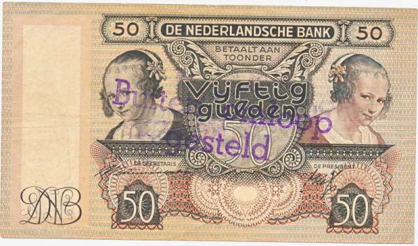Het biljet van 50 gulden oestereetsters werd in 1945 bij de geldzuivering weer uit omloop gehaald.