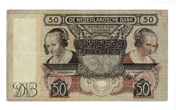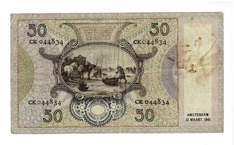 Het biljet van 50 gulden oestereetsters werd in 1945 bij de geldzuivering weer uit omloop gehaald.