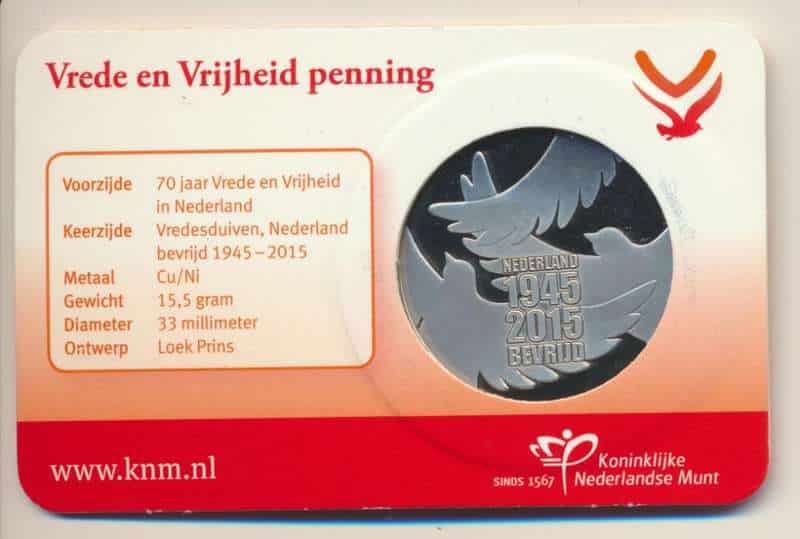 Nederland vrede en vrijheid penning 2015 in coincard.