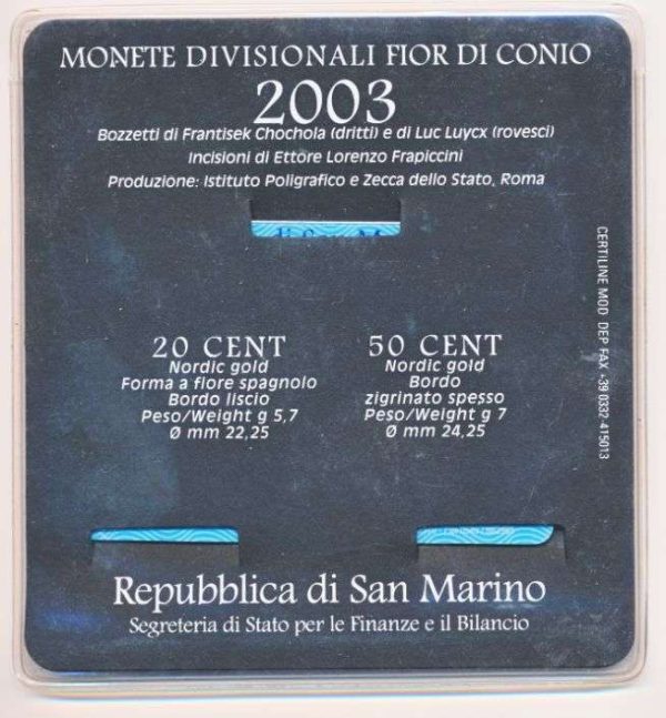 San Marino 20 en 50 eurocent 2003 in coincard Kwaliteit:UNC