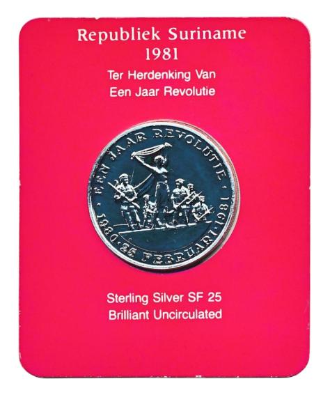 Suriname 25 gulden 1981 Een Jaar Revolutie zilver BU