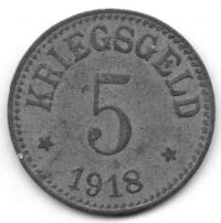 Duitsland oorlogsgeld 5 pfennig 1918-A