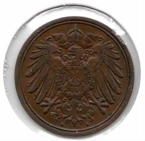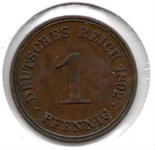 Geslagen door het Duitse rijk. Met op de voorzijde: Deutsches Reich 1 Pfennig.