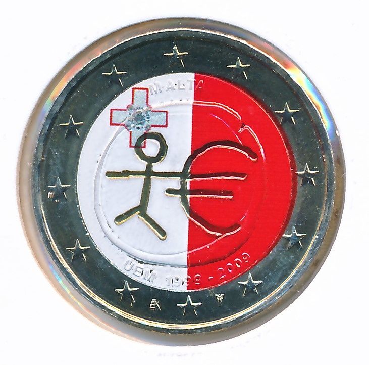 2 Euromunt EMU gekleurd