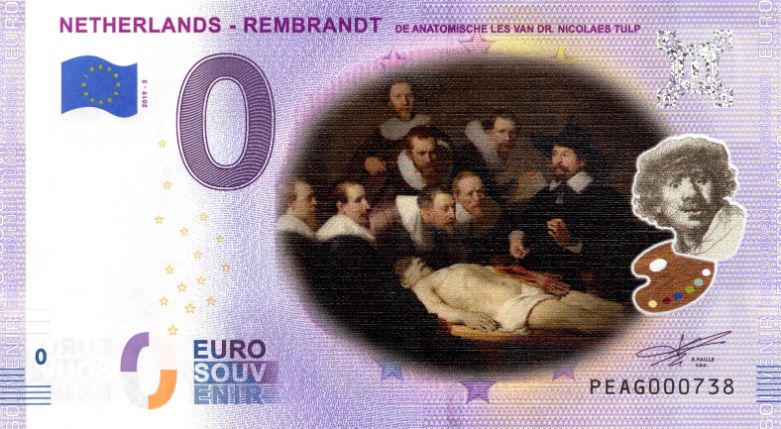 Nederland 0 Euro Rembrandt de anatomische les 2019 in kleur