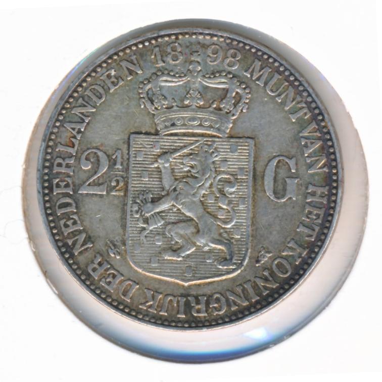 Nederland 2,5 Gulden 1898 Wilhelmina met diadeem met patina