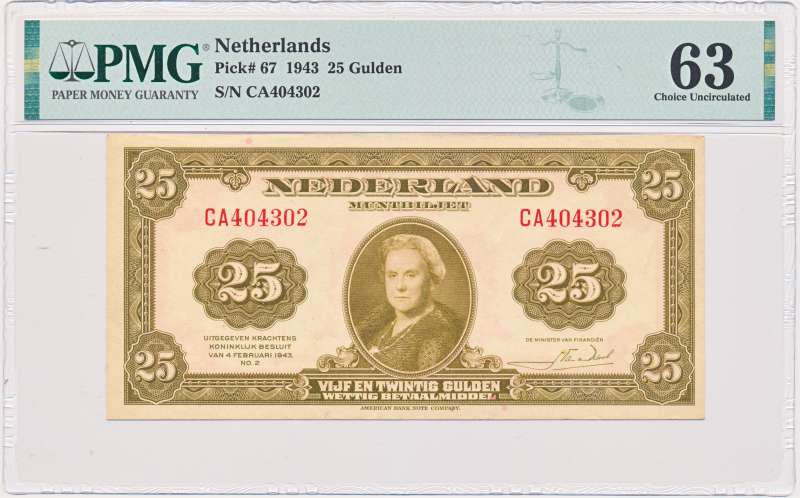 Nederland 25 Gulden 1943 Wilhelmina PMG63