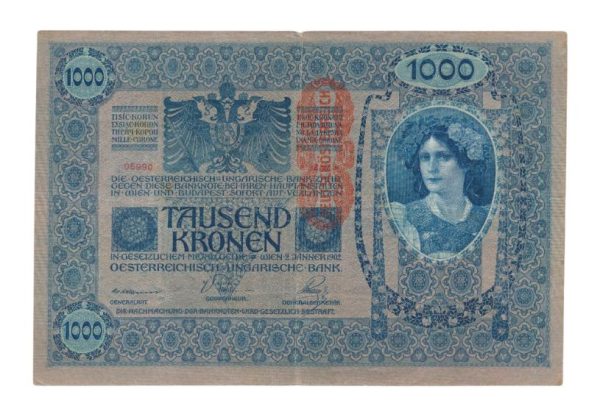 1000 Kronen was in begin 20e eeuw een groot bedrag, en de biljetten kwamen eigenlijk pas echt veelvuldig in omloop na de eerste wereldoorlog omdat er in het nu ‘Deutsch Österreich’ een hyperinflatie was ontstaan.
