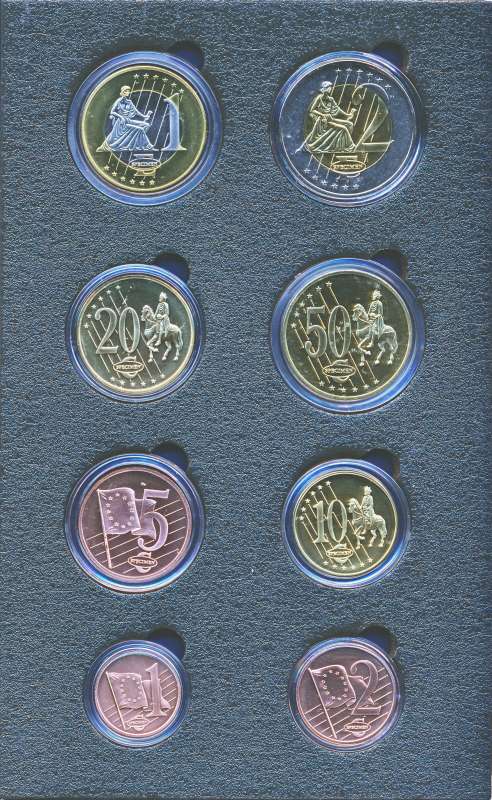 Bevat de probe 1 cent t/m de probe 2 euro met op de muntzijde specimen.