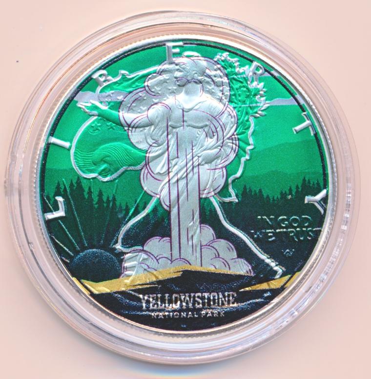 Gekleurde uitgifte van de zilveren Amerikaanse dollar, ook wel de eagle genoemd.