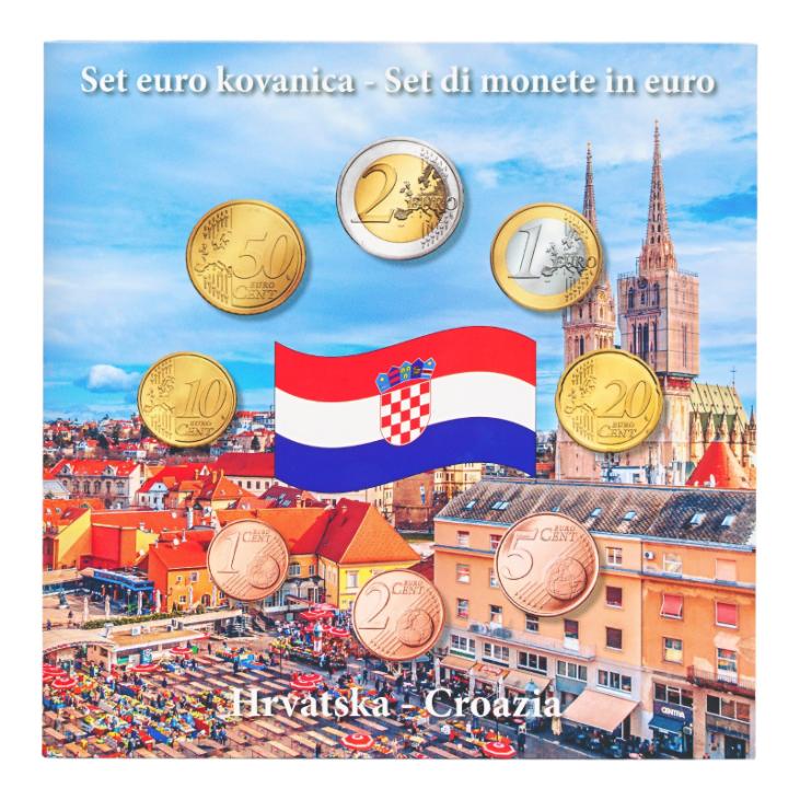 Хорватия Набор монет евро 2023 UNC Inclusief Europa-penning. De set bevat de 1 eurocent t/m 2 euro in UNC-kwaliteit.